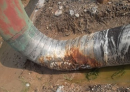 此管線一側由于建筑垃圾堆積導致管體受到側方位壓迫產生形變,已經泄漏。